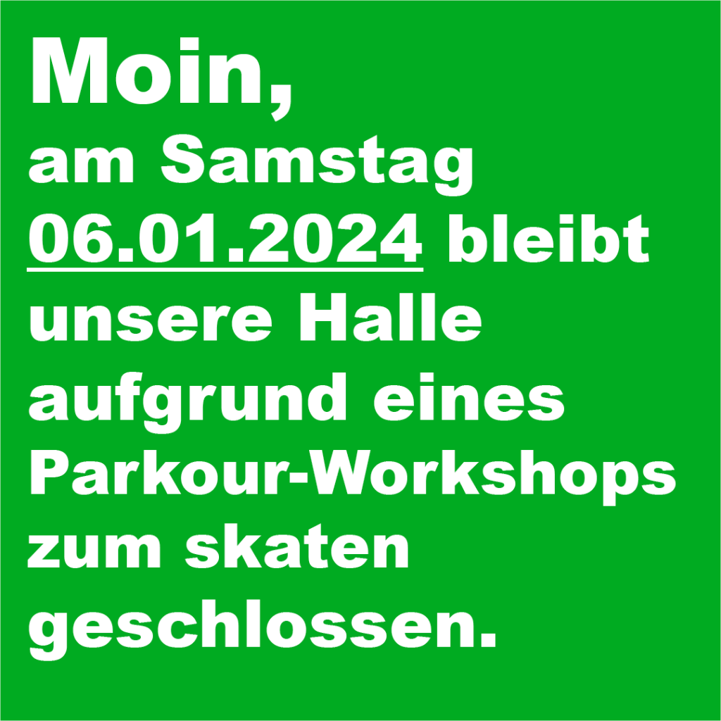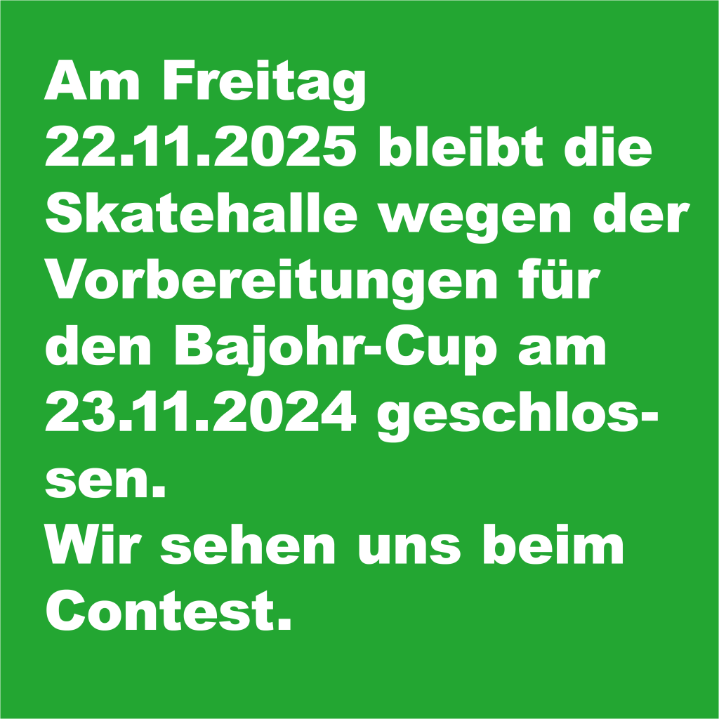 Am Freitag 31.10.2025 und am Samstag 01.11.2025, bleibt die Skatehalle geschlossen.